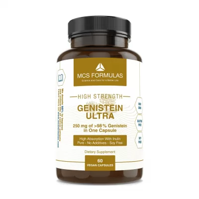 Maximum Strength, Purity and Absorption … all in One Capsule We love this product and formulation because:- HIGHEST STRENGTH: it is the highest available strength of Genistein in a single capsule (250mg in a capsule), thus reducing the number of capsules we take each day;